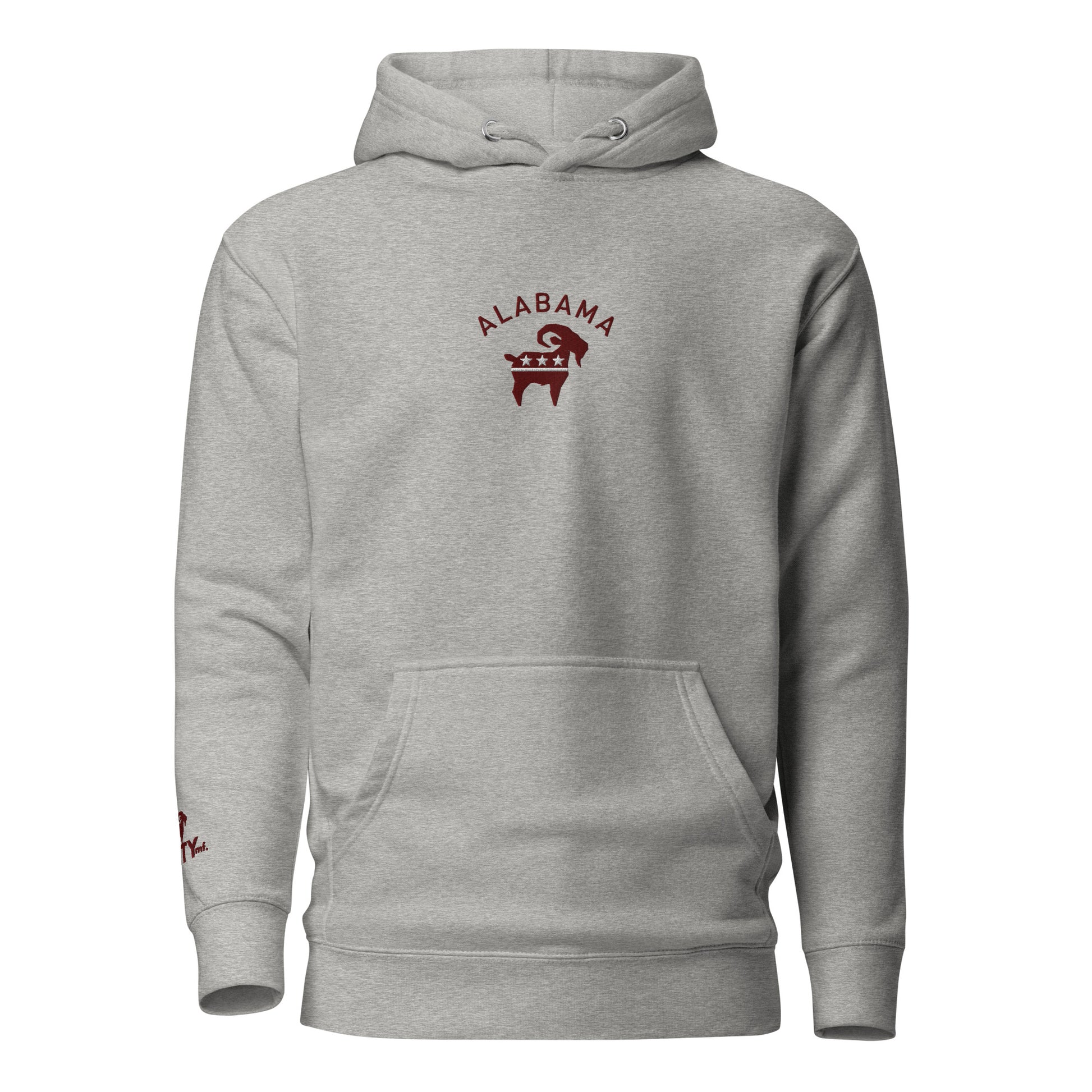 SaltyMF Alabama-Crimson Party Goat Hoodie. Inspired by our collegiate American Party Goat Design. The GOAT's are gathering in Tuscaloosa it's Game Day!