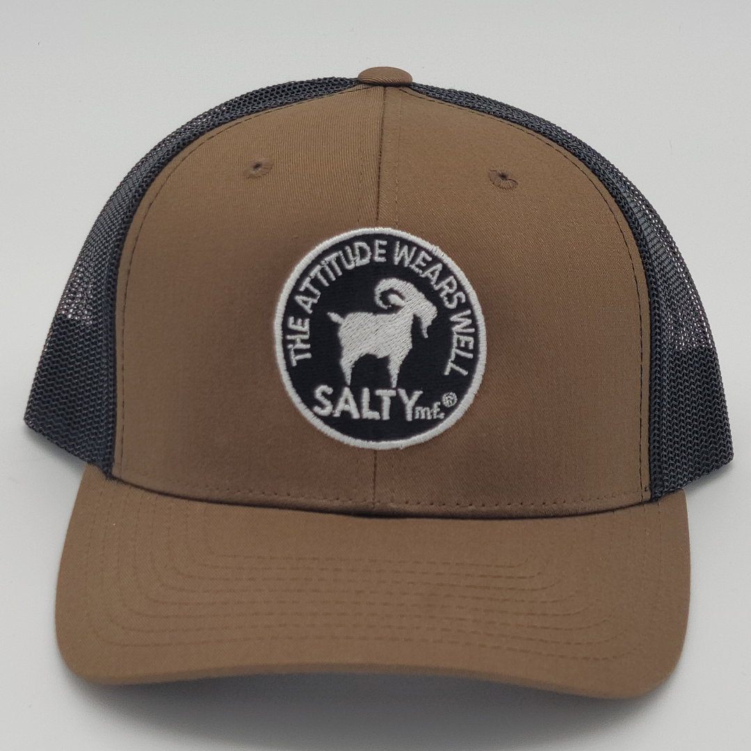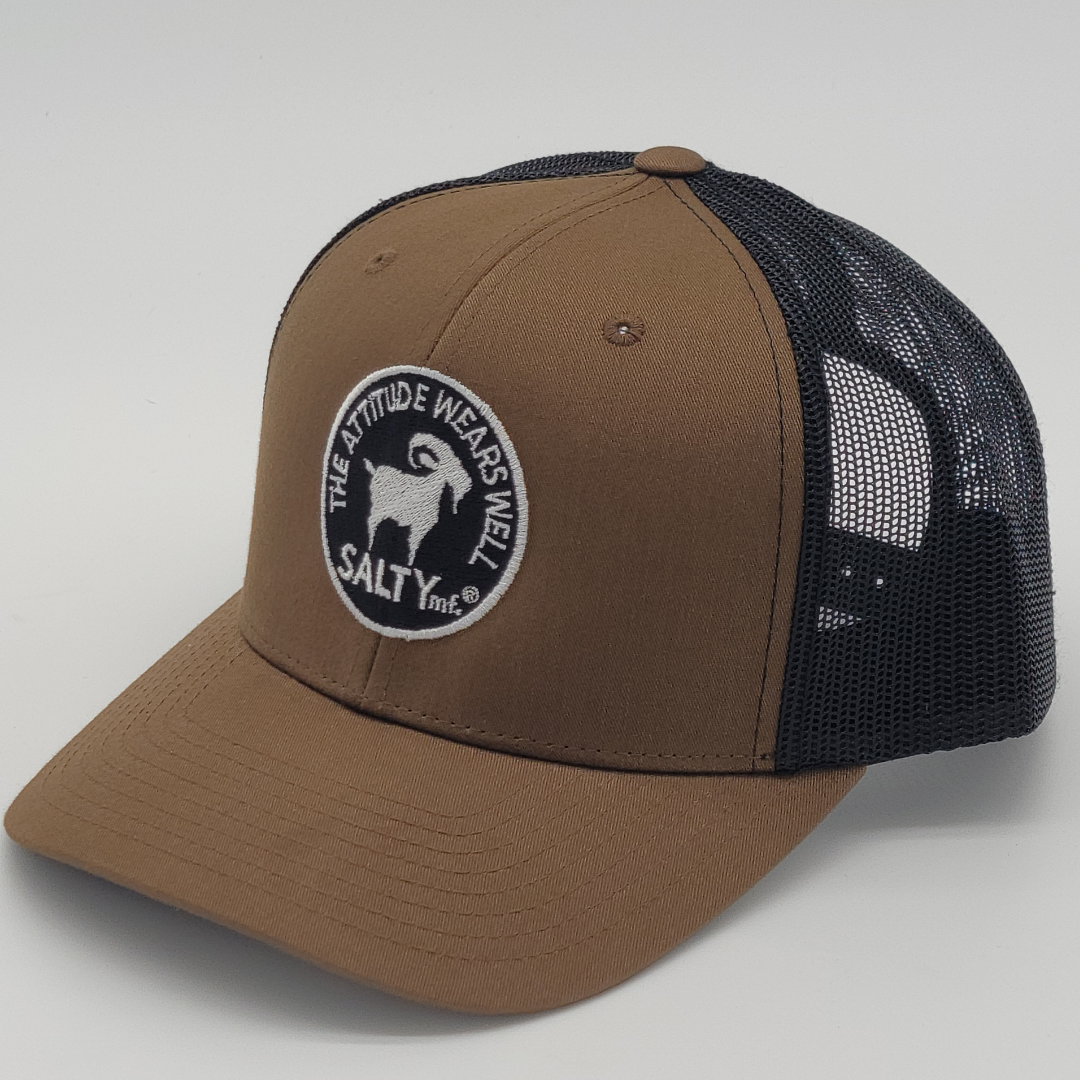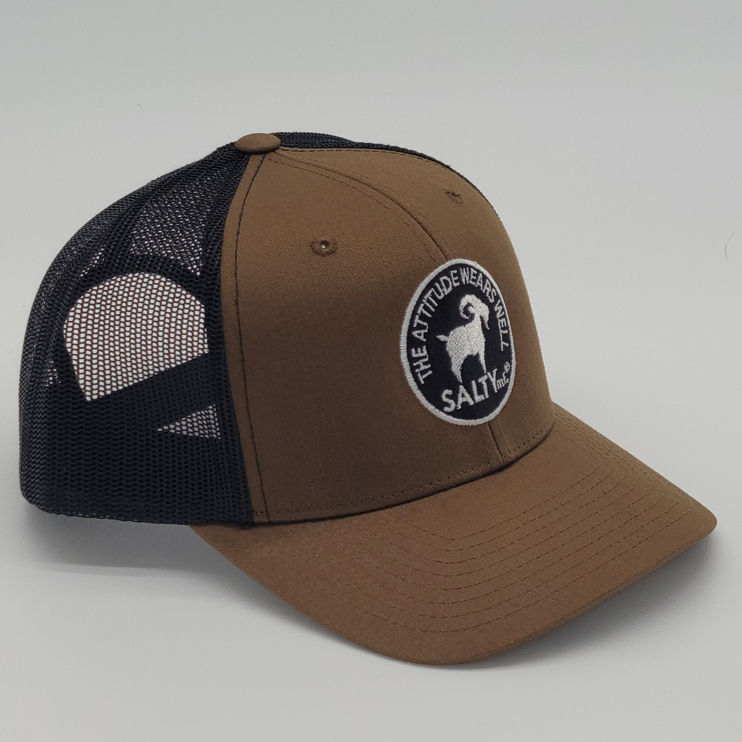 The SaltyMF Coyote Brown/Black Attitude Snapback Trucker. Outdoors or Sharp Dressed this hat wears well for any occasion.