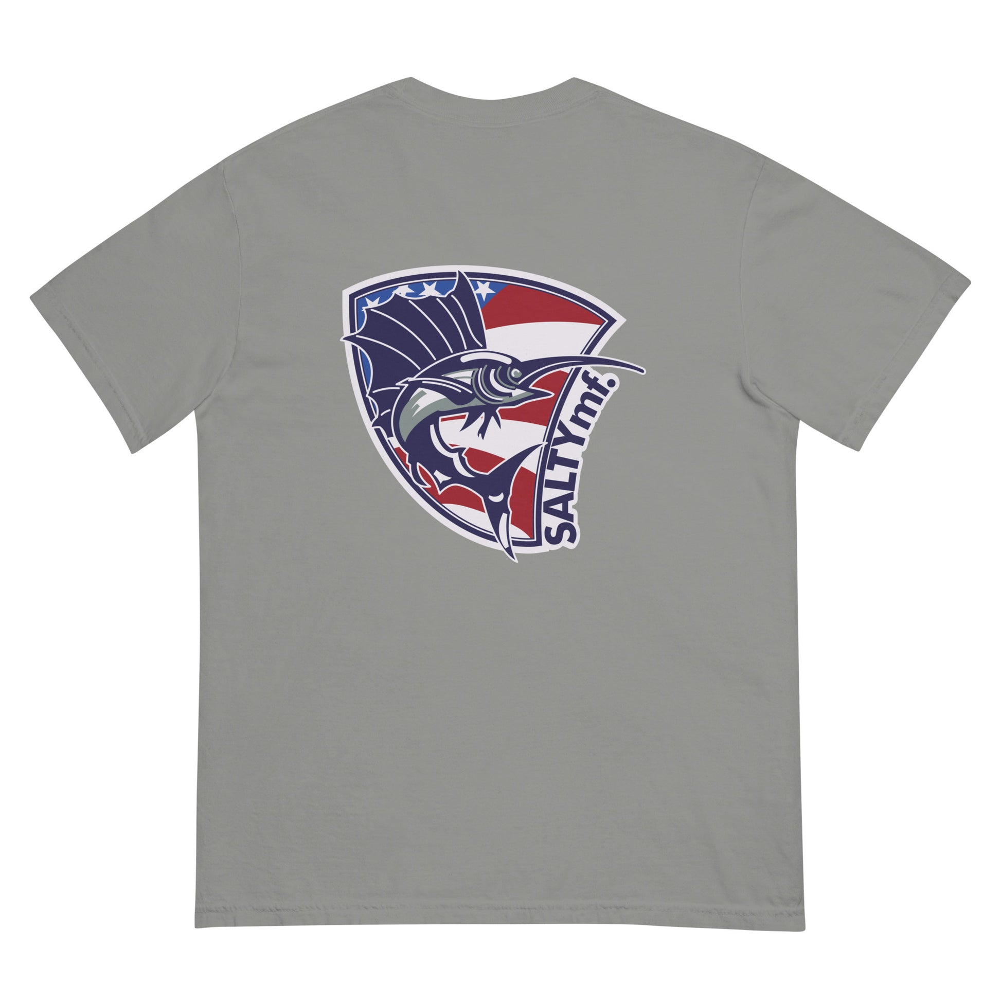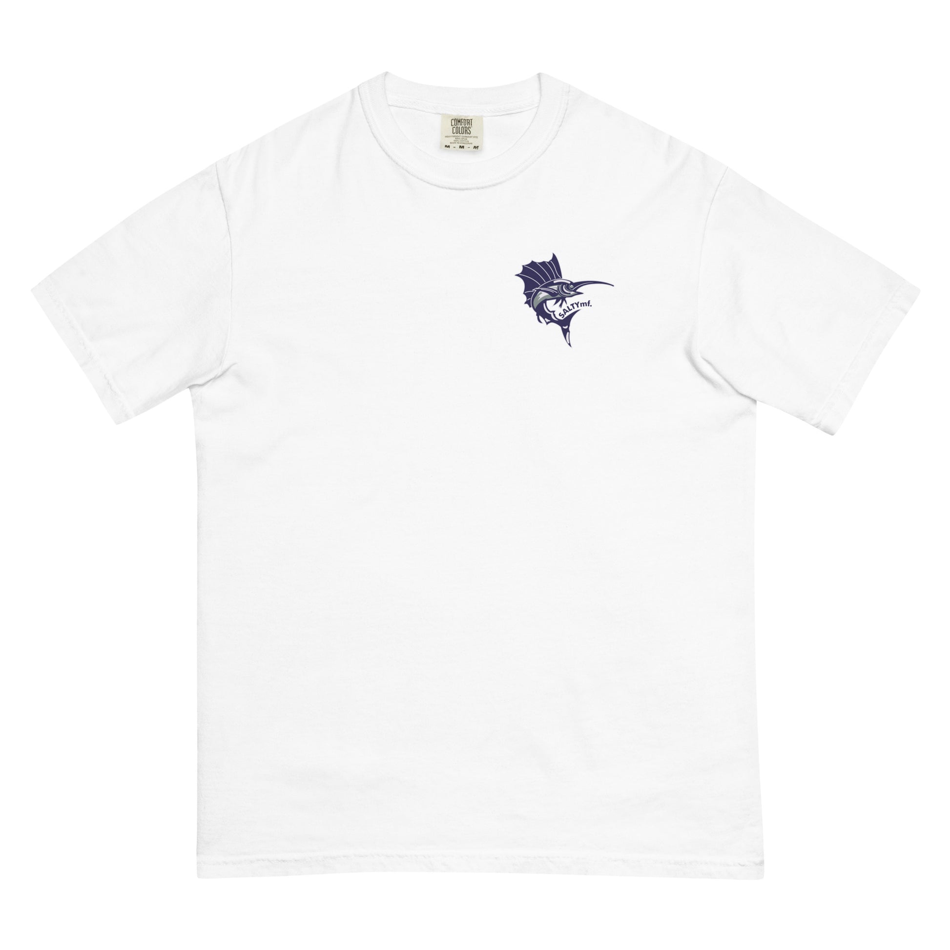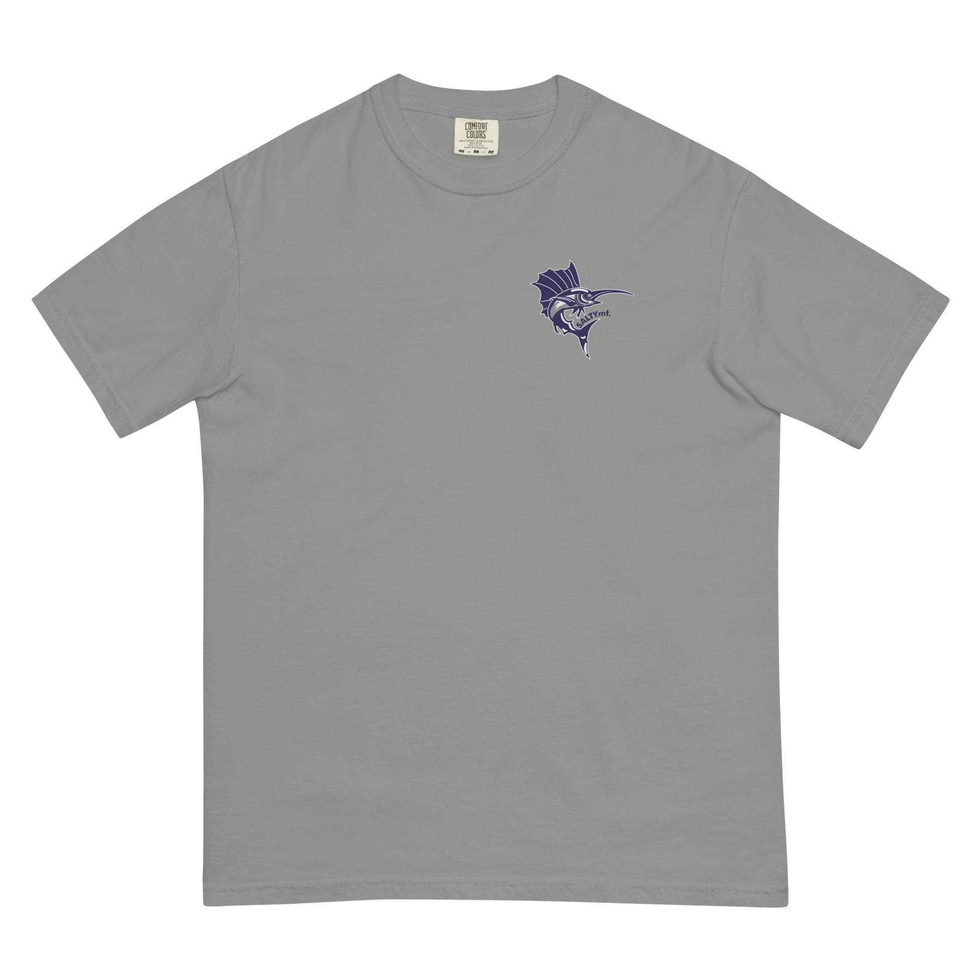 The SaltyMF the Billy Fish Heavyweight Tee. Thick, structured tee, super soft and breathable. Made of 100% ring-spun cotton. Regular t-shirt style design inspired from our Guatemala Billfish Team Tourney Shirt! This is a comfort colors tee one of our favorites.