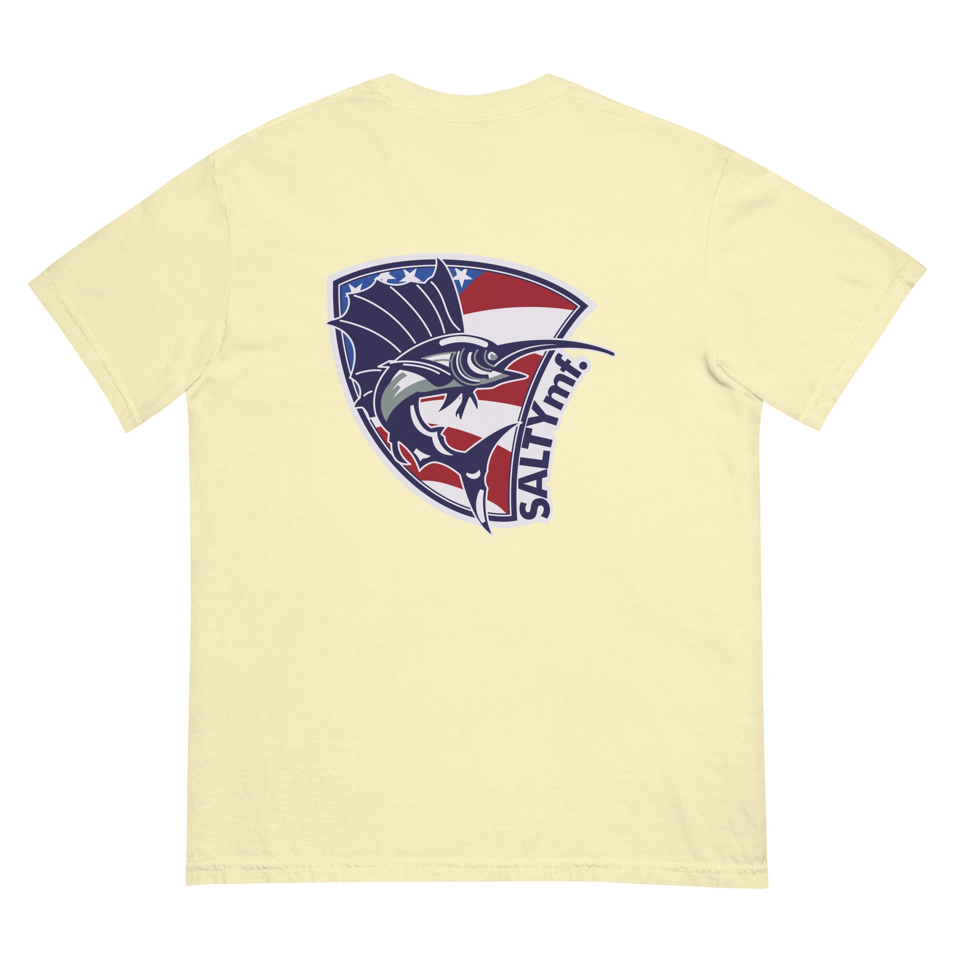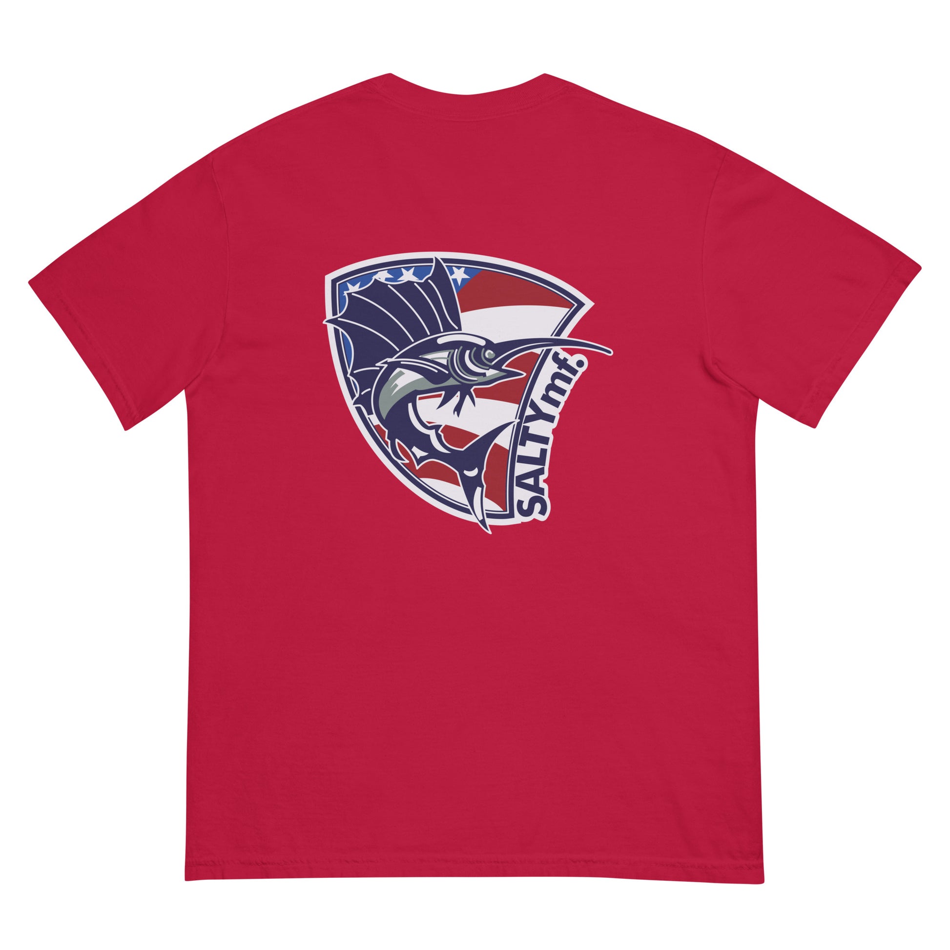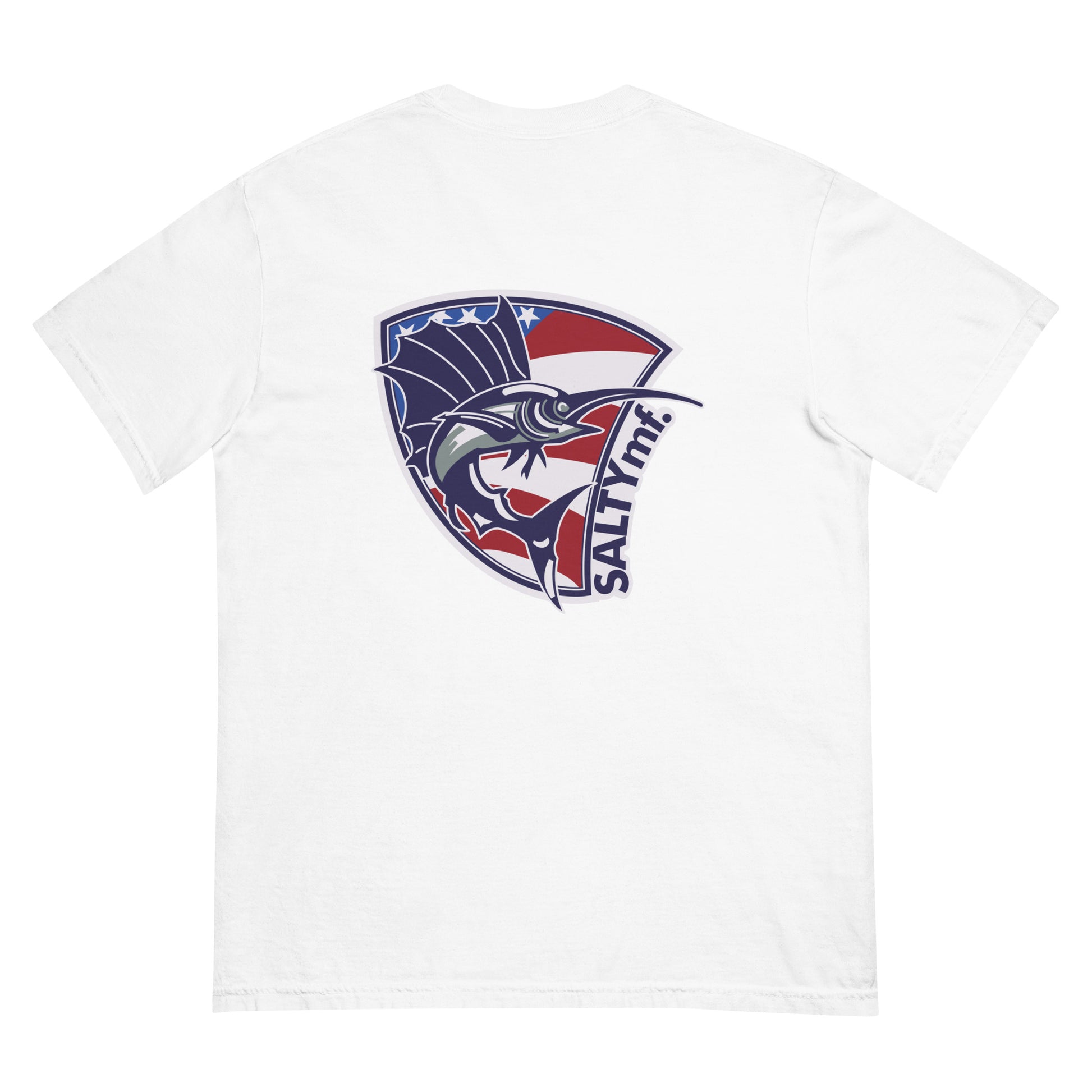 The SaltyMF the Billy Fish Heavyweight Tee. Thick, structured tee, super soft and breathable. Made of 100% ring-spun cotton. Regular t-shirt style design inspired from our Guatemala Billfish Team Tourney Shirt! This is a comfort colors tee one of our favorites.